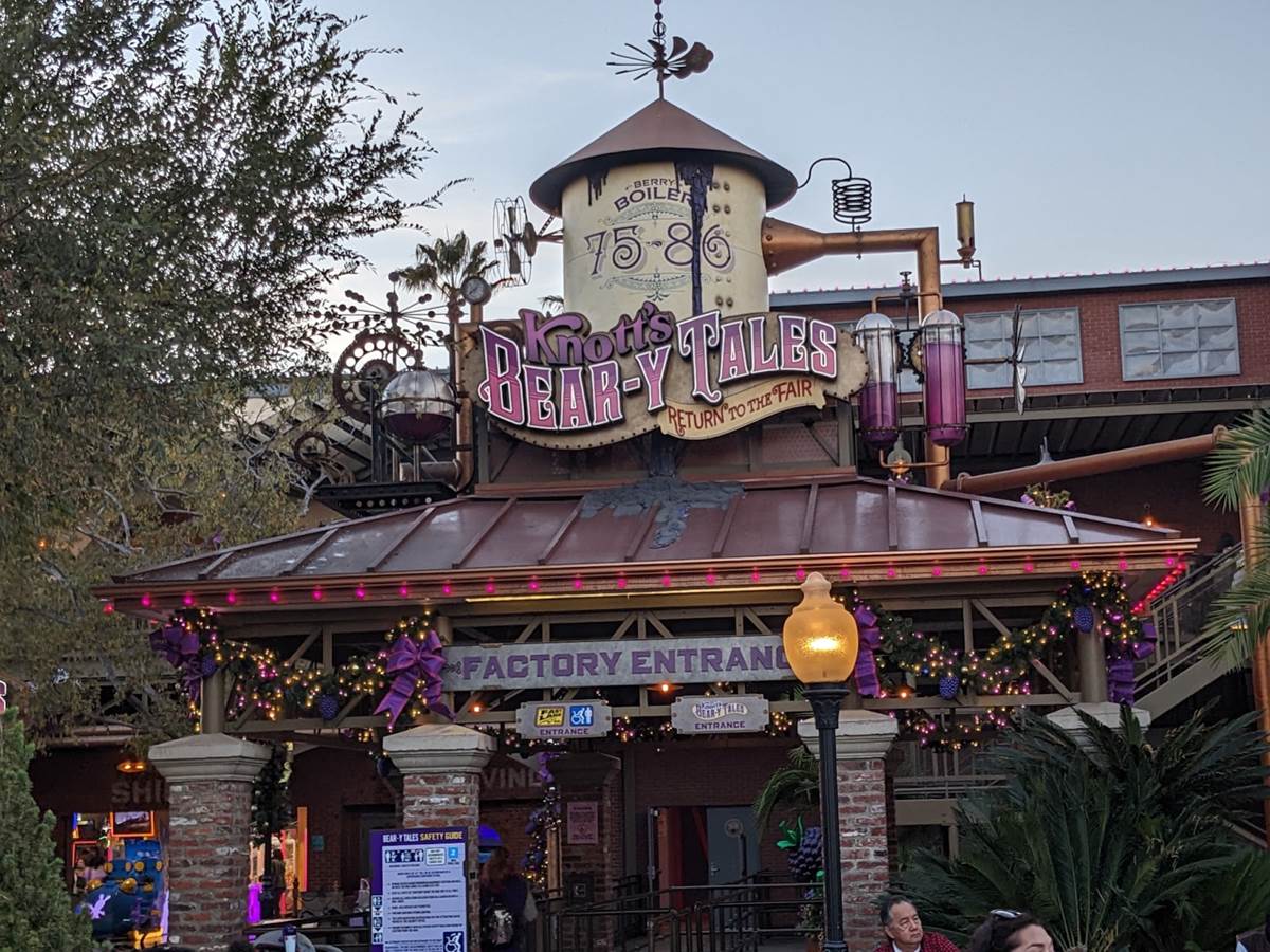 - Knott’s Bear-y Tales is decked out in beautiful purple boysenberry garland.