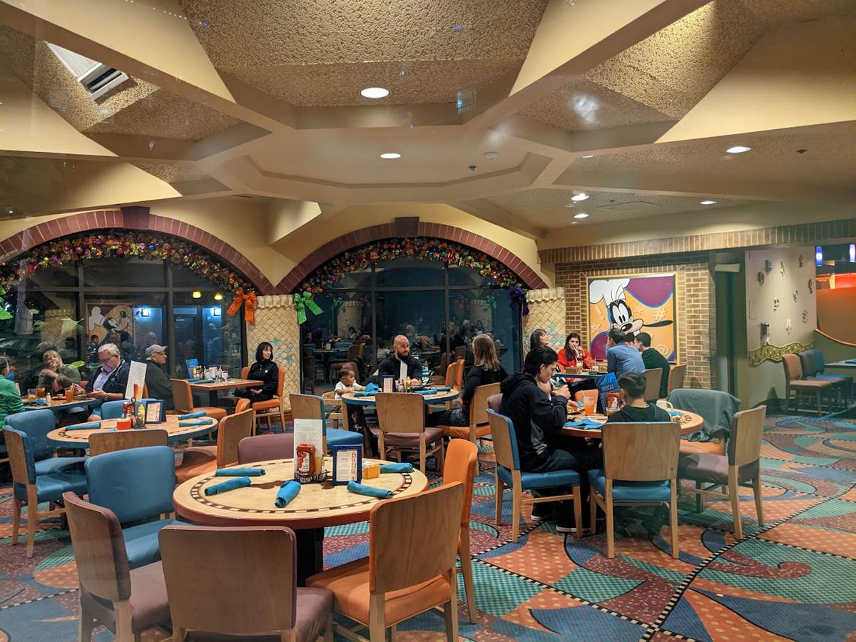Goofy’s Kitchen also features fun, bright wreaths and garland adorned much of the eatery.