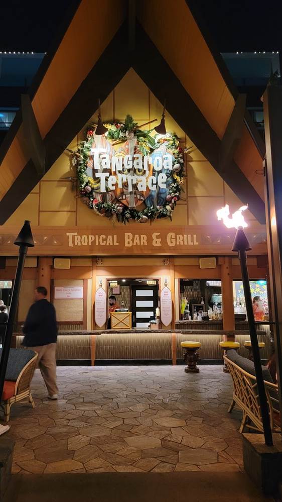 Once inside the main lobby, located in the Fantasy Tower, guests are greeted with a fun mural that features holiday artwork with stylized vintage storybook-esque art that shows off some of the hotel landmarks, like the Monorail pool and Tangaroa Terrace.