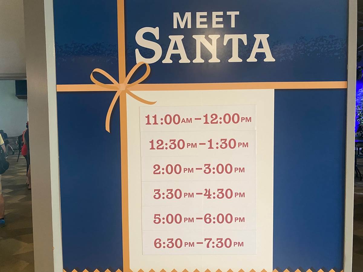 Here are the current times that guests can meet Santa.