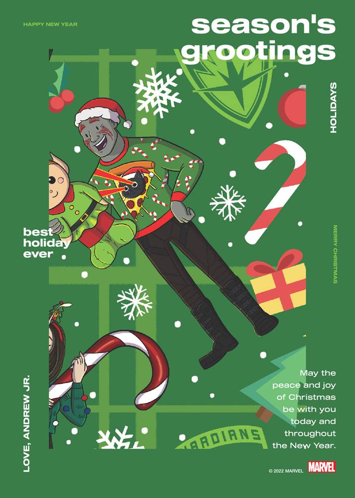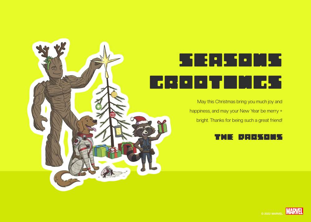 - With The Guardians of the Galaxy Holiday Special arriving on Disney+, Shutterstock is spreading festive cheer with a twist on traditional holiday cards, featuring all the Guardians decked out in their December best. Shutterstock has free, customizable, easy-to-use themed templates featuring the ragtag group of galaxy-saving heroes that you can send to everyone on your holiday list this year.