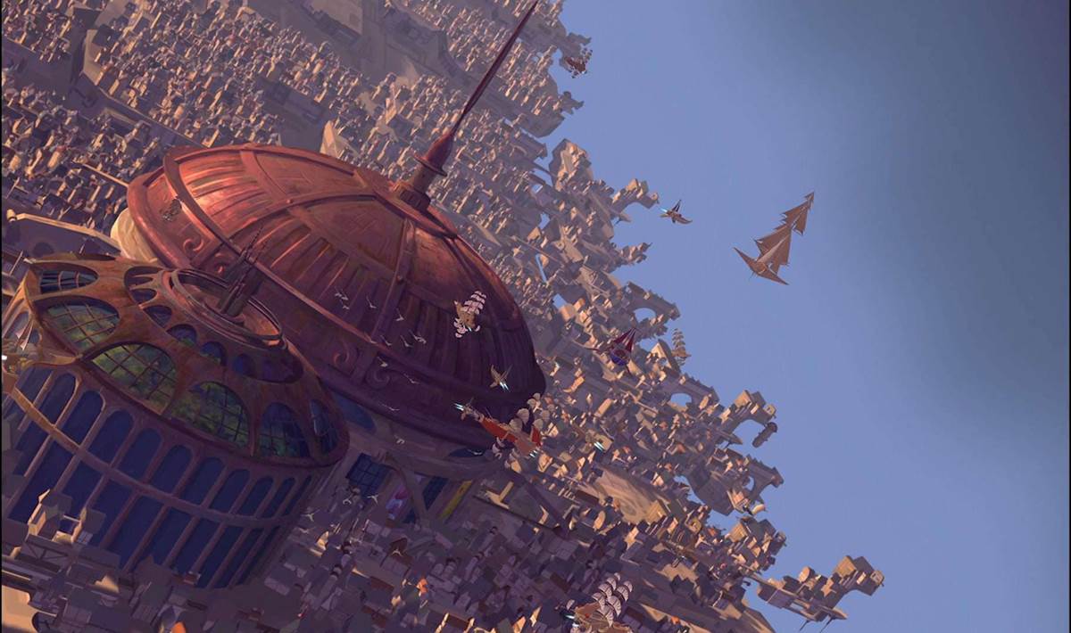 Think of Deep Canvas as this generation’s multiplane camera. Through numerous layers Deep Canvas enables. As the scene progresses, more and more brushstrokes are added to fill in gaps from the previous frames. In this way, artists (with considerable help from a technical director) are able to use their artistic intuition to create entire 3D environments that can intercut seamlessly with the 2D world of the animated film. It also gives backgrounds, like those in Treasure Planet, a seemingly infinite look. With the system in place, Clements and Musker can now also make sweeping camera movements in their sci-fi action film, reportedly citing both Steven Spielberg and James Cameron as inspiration for those dynamic movements.
