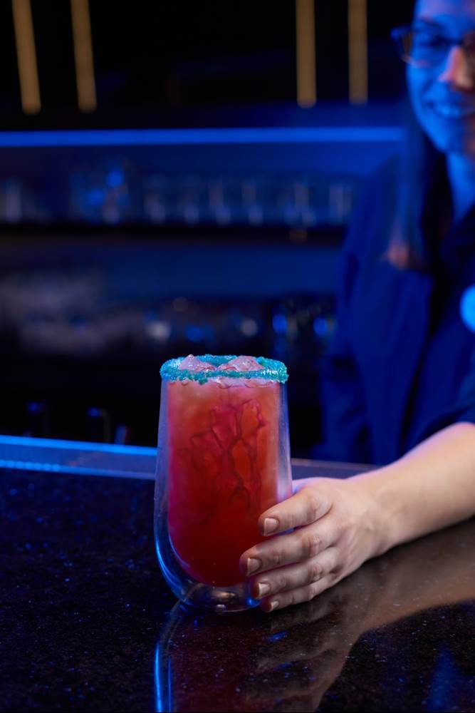 - Imagination - Bacardi Light Rum, Malibu Rum, Blood Orange, Pineapple, Passion Fruit, Pop Rock Rim