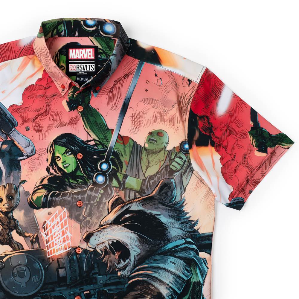 Soo, this weekend is Los Angeles Comic-Con and RSVLTS is bringing their signature shirts to the showfloor, but they’re also delivering a new exclusive. It’s the Guardians of the Galaxy’s time to shine on an all new button down that will only be available at LACC!