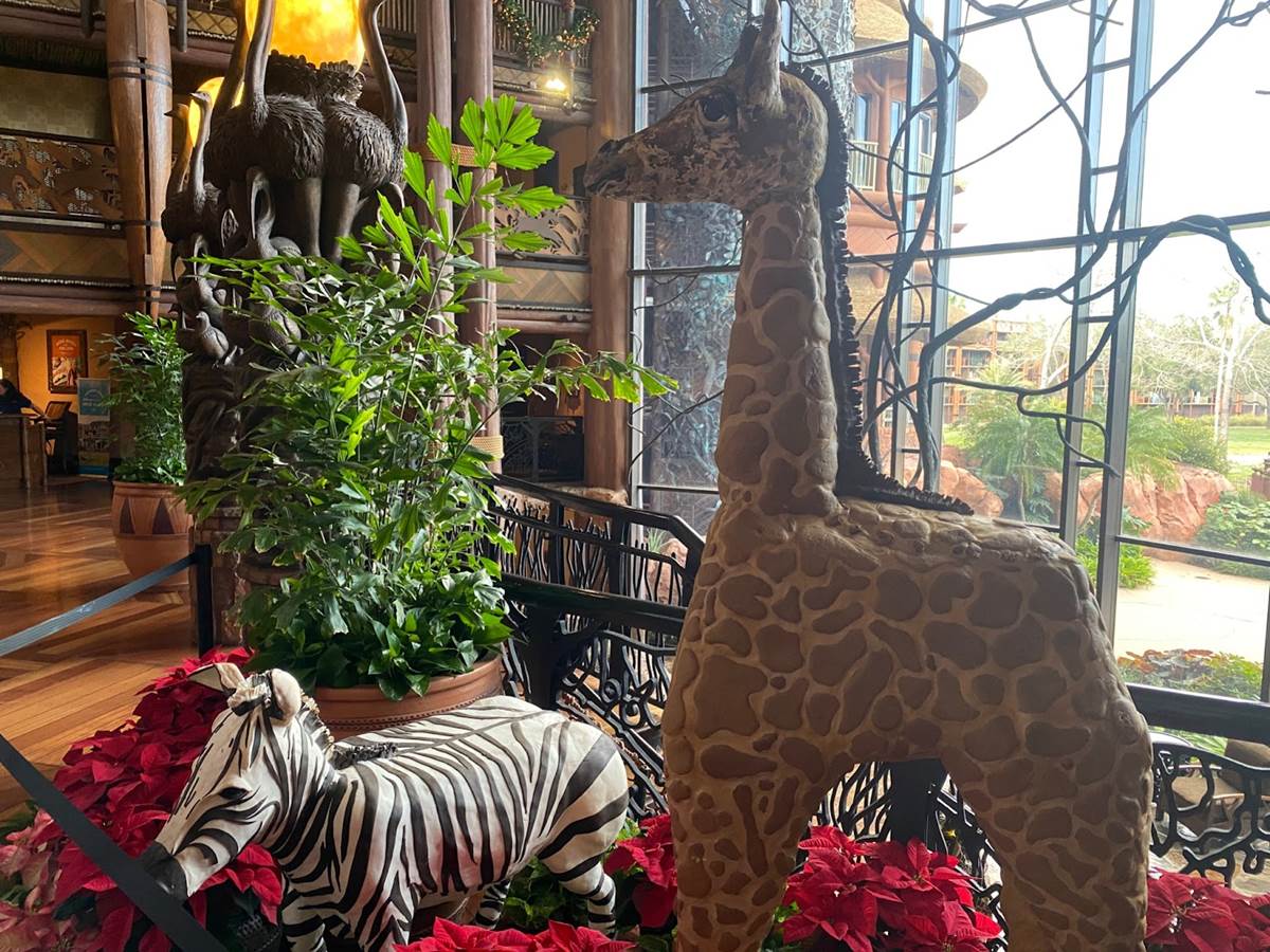 Last year, Disney’s Animal Kingdom Lodge began a new holiday tradition with their very own “Ginger-affe" gingerbread giraffe. This year, Ginger is accompanied by Debra the Zebra!