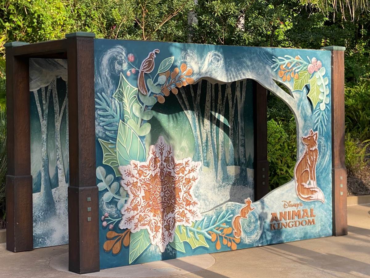 Outside the entrance to Disney’s Animal Kingdom, you’ll find the usual photo-op set-up takes on a wintery theme.