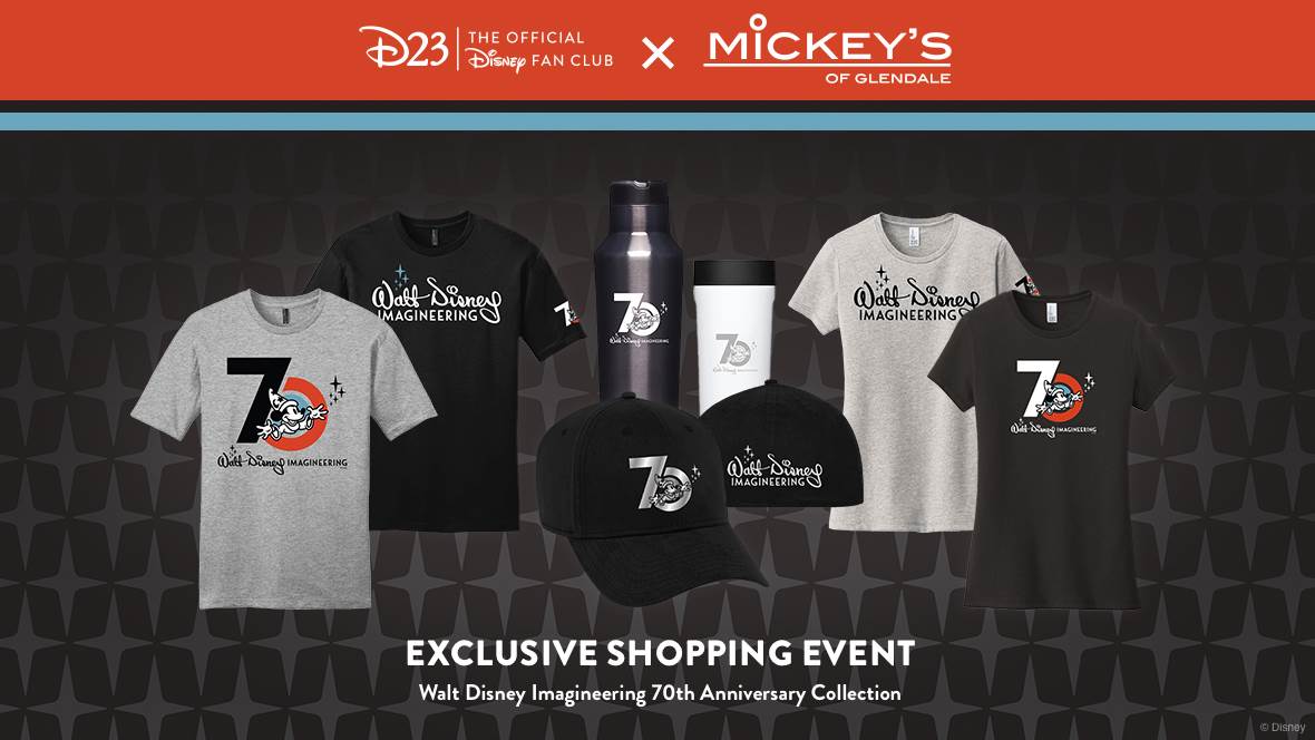 D23 Gold Members can take advantage of a special shopping opportunity through Mickey’s of Glendale, the official Walt Disney Imagineering Campus Store, that is celebrating 70 years with special new gear.