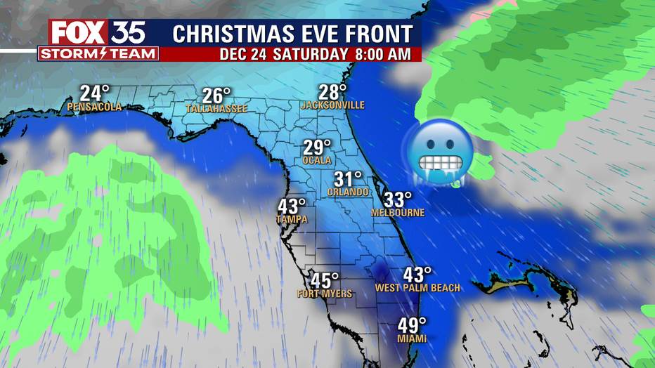 - On Christmas Eve morning, those in Florida will be waking up to temperatures in the 20s and 30s, with highs only reaching the 40s and low 50s on Saturday.