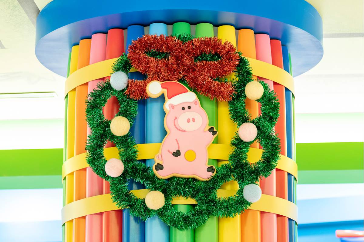 - From a wooden Christmas tree filled with caricatures of the Toy Story characters, to a wreath with Hamm as a Christmas cookie, the decorations are cute and appropriately over-the-top.