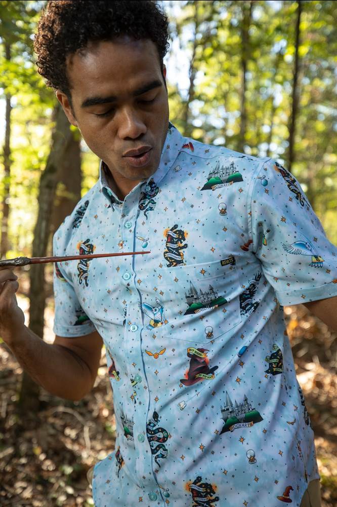 “Hmmm, let’s see… you have great fashion sense… you’re definitely bold… adventurous… life of the party... funny… creative… good looking… next level Harry Potter fan… ah, we’ve got it… WIZARDING INK KUNUFLEX BUTTON DOWN!!!"