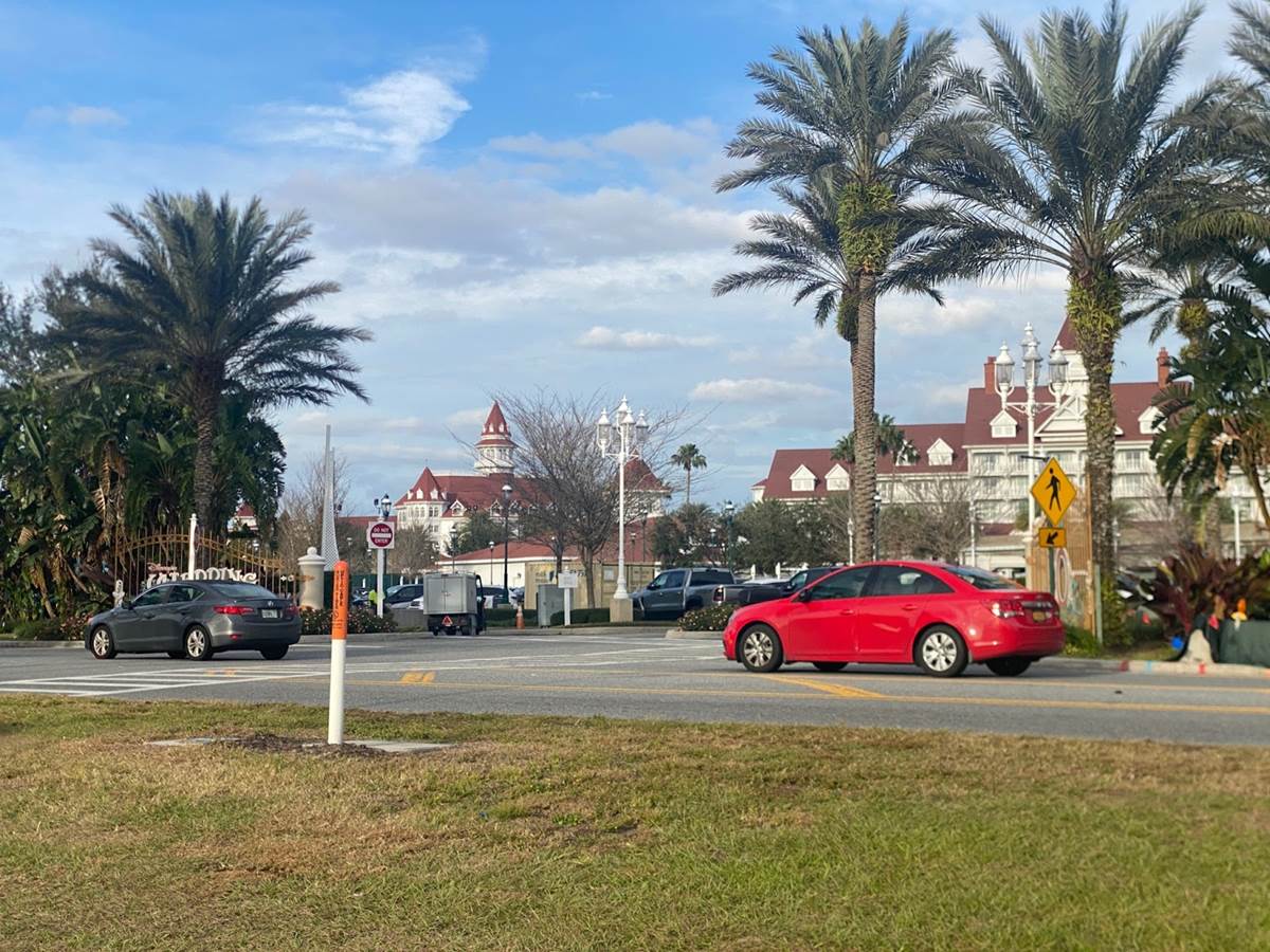 - Halfway along the path, guests actually have to cross the street (at a crosswalk with no light), before crossing once again when reaching the Grand Floridian’s Wedding Pavilion.