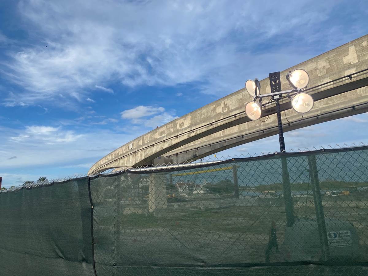 - A look at the crane on site from the Wedding Pavilion parking lot.