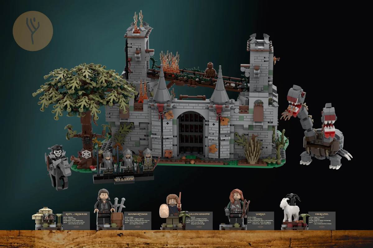 - The model shows a detailed interpretation of the battle scene at castle Tir Asleen with approximately 3,000 bricks used.
