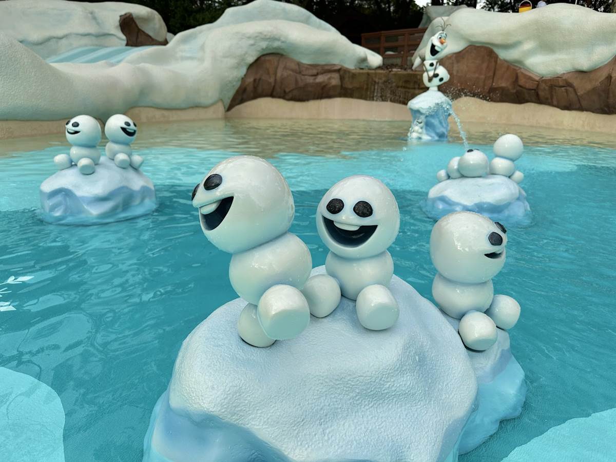 Tike’s Peak, an area dedicated to little visitors at Walt Disney World’s third water park. Now, characters have been added to the area from the Frozen franchise, including the short Frozen Fever. With the inclusion of the characters, youngsters can now experience the miniature slides and attractions, splashing around in front of Anna and Elsa’s igloo castle or playing with Olaf and his Snowgie pals in the warm wading pool.