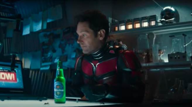 Could this be the answer to what kind of beer the Avengers had on the ship to get Thor to help? Scott Lang enjoys a Heineken in a new ad for both the beer and Marvel’s upcoming film Ant-Man and the Wasp: Quantumania.