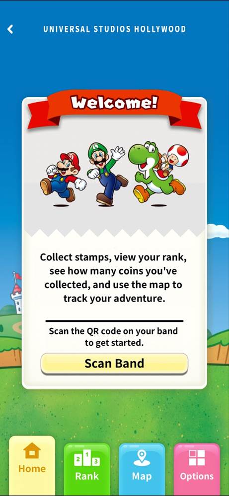 - From the app’s homepage, you can access the Super Nintendo World portal, which has the ability to add your Power-Up Band, check the leaderboard, and also features a full map of the area, done in classic Nintendo style.