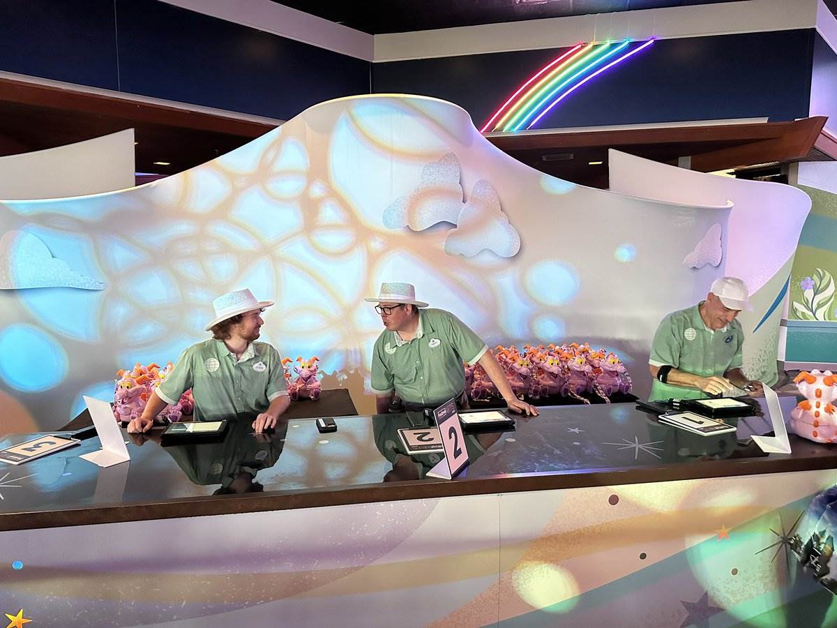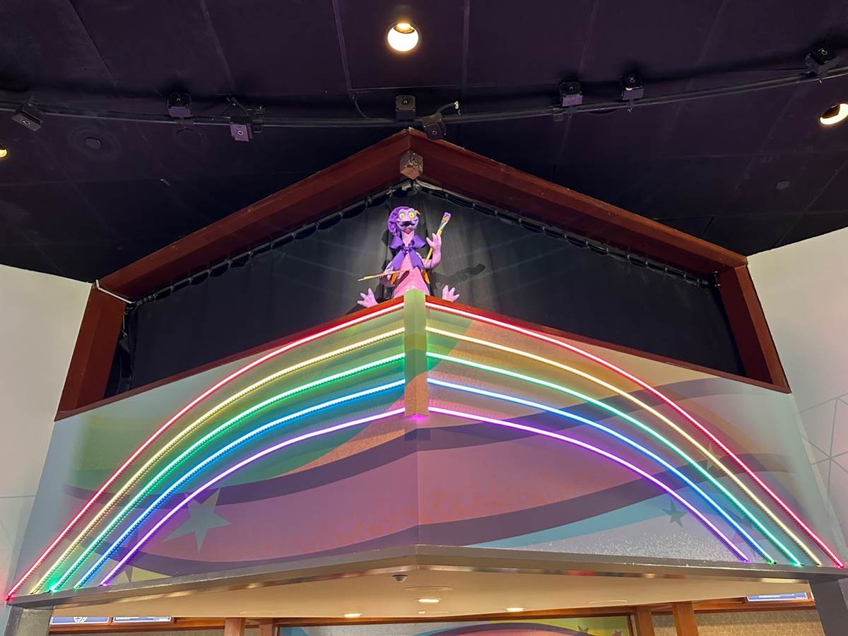 The artwork on the walls inside Figment’s Inspiration Station takes some inspiration from the load area mural from the original version of Journey into Imagination, complete with projections of Figment that were used in the old ImageWorks.