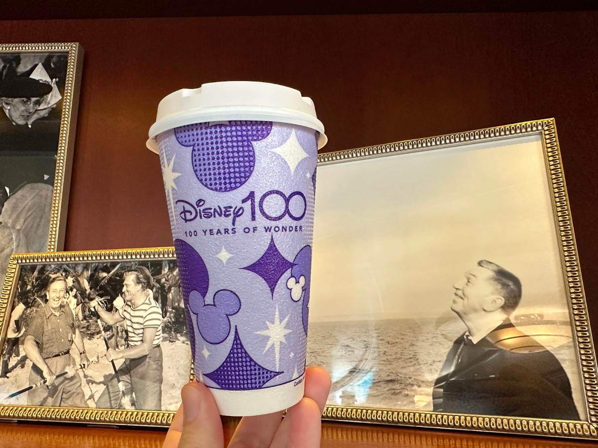 - We spotted new hot cups, for drinks such as coffee or tea, featuring Disney100 branding, at the Cove Cafe aboard the Disney Fantasy.