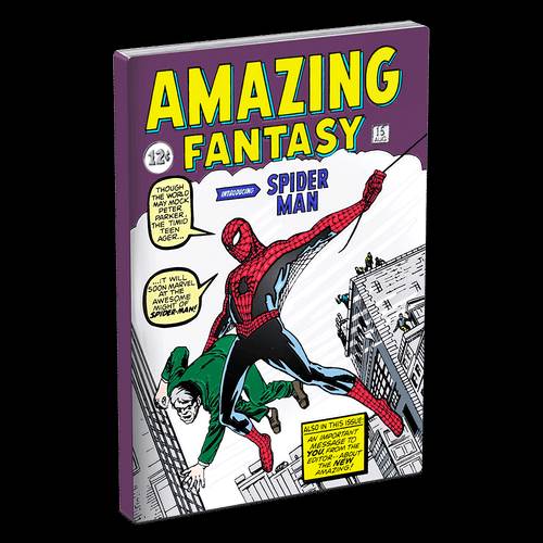- Made of 1oz pure silver, this COMIX Coin displays a coloured image of the “Amazing Fantasy #15" comic cover from 1962 – the first appearance of Spider-Man.