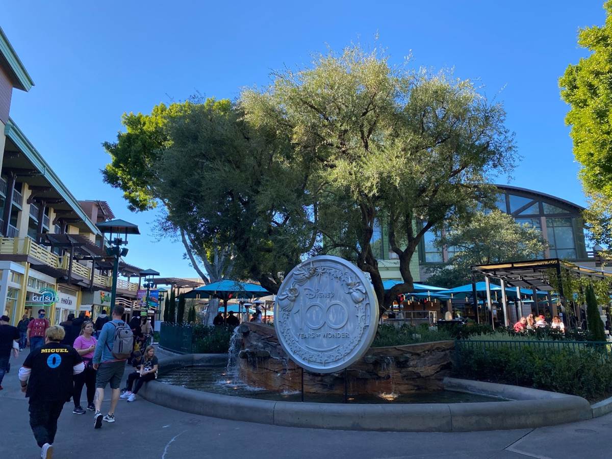 - Another giant Disney100 medallion can be found at the end of Buena Vista Street, where the Christmas Tree stands during the holiday season.