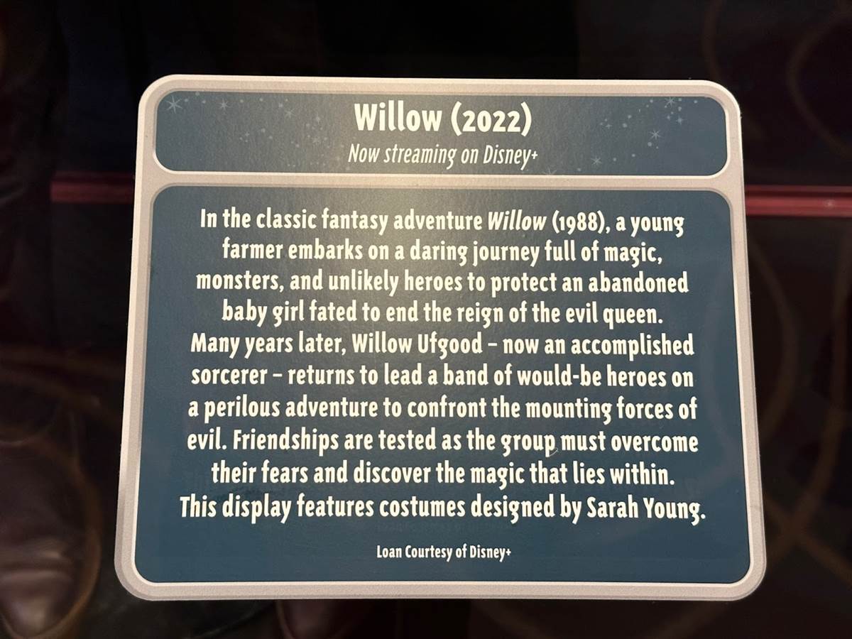 - The Willow and National Treasure: Edge of History items can be found at the end of the exhibit portion of Walt Disney Presents, just before the theater.
