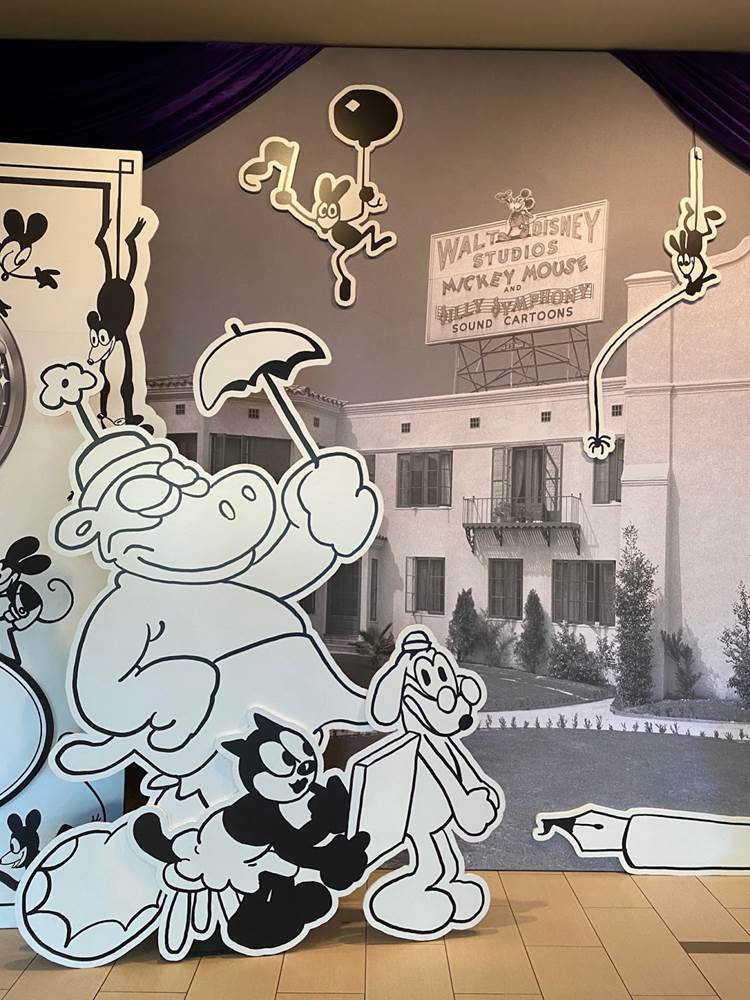 The Disneyland Hotel is celebrating Disney100 with a wonderful diorama featuring Walt Disney and his earliest cartoon creation, the Alice Comedies of the 1920s.