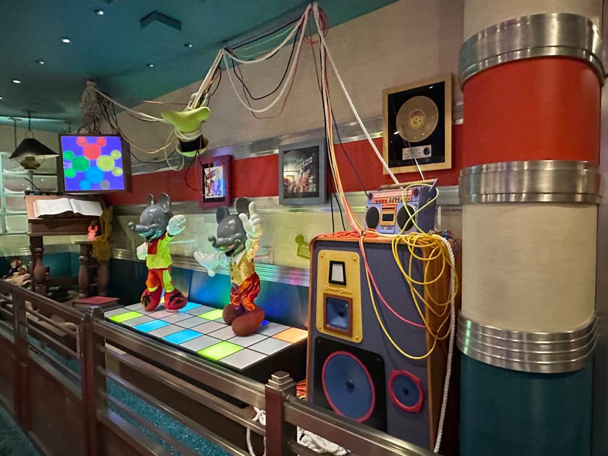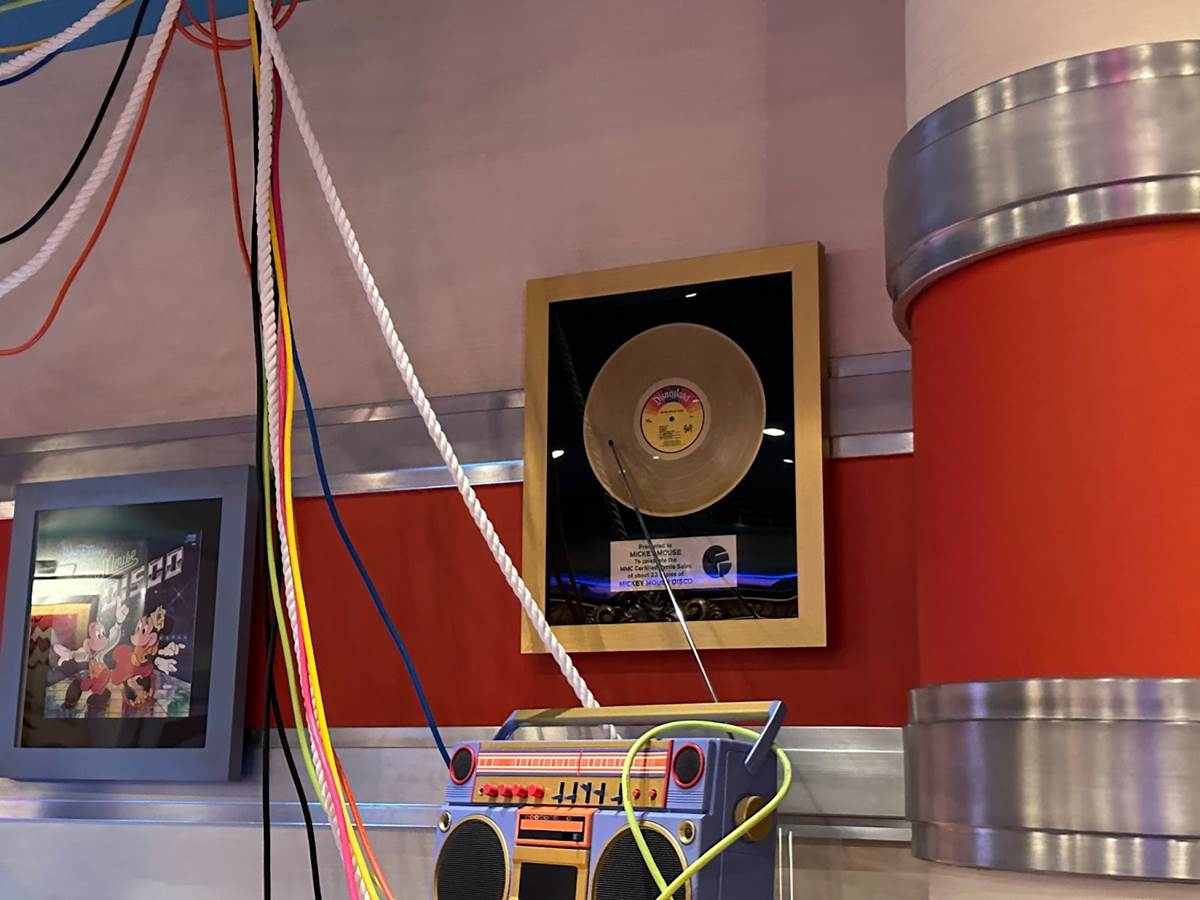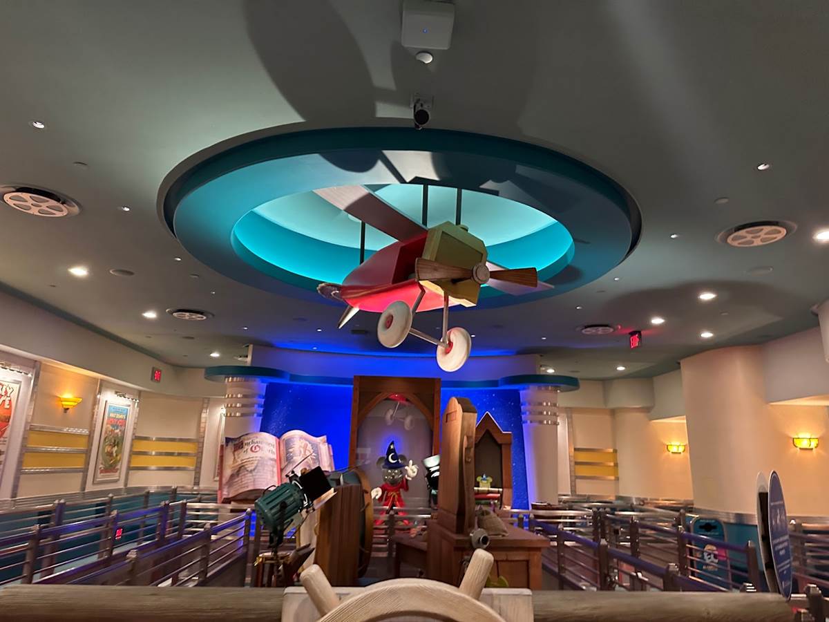 Mickey’s plane from the historical Plane Crazy short is featured front and center in this room.