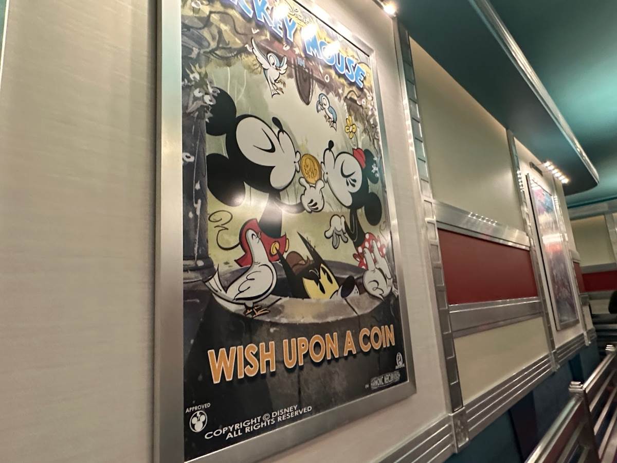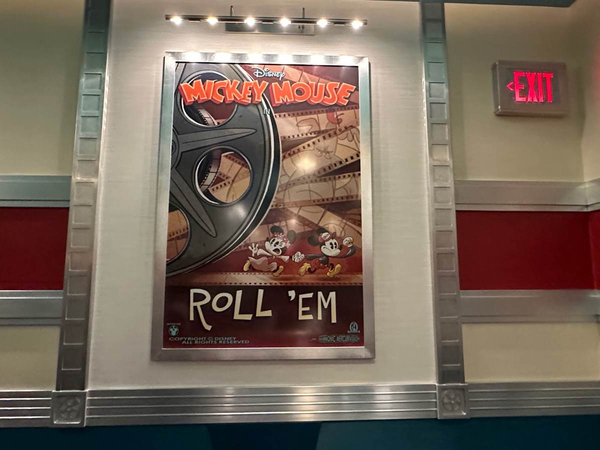 More classic Mickey short posters can be found throughout this room of the queue.