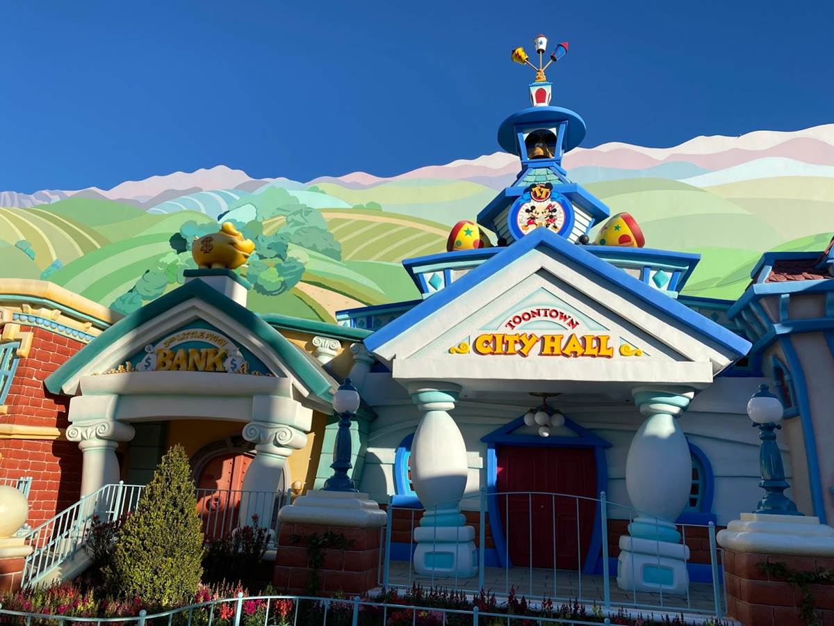 The Toontown City Hall area remains much the same as before, although the hills have been changed to better cover the Runaway Railway show building.