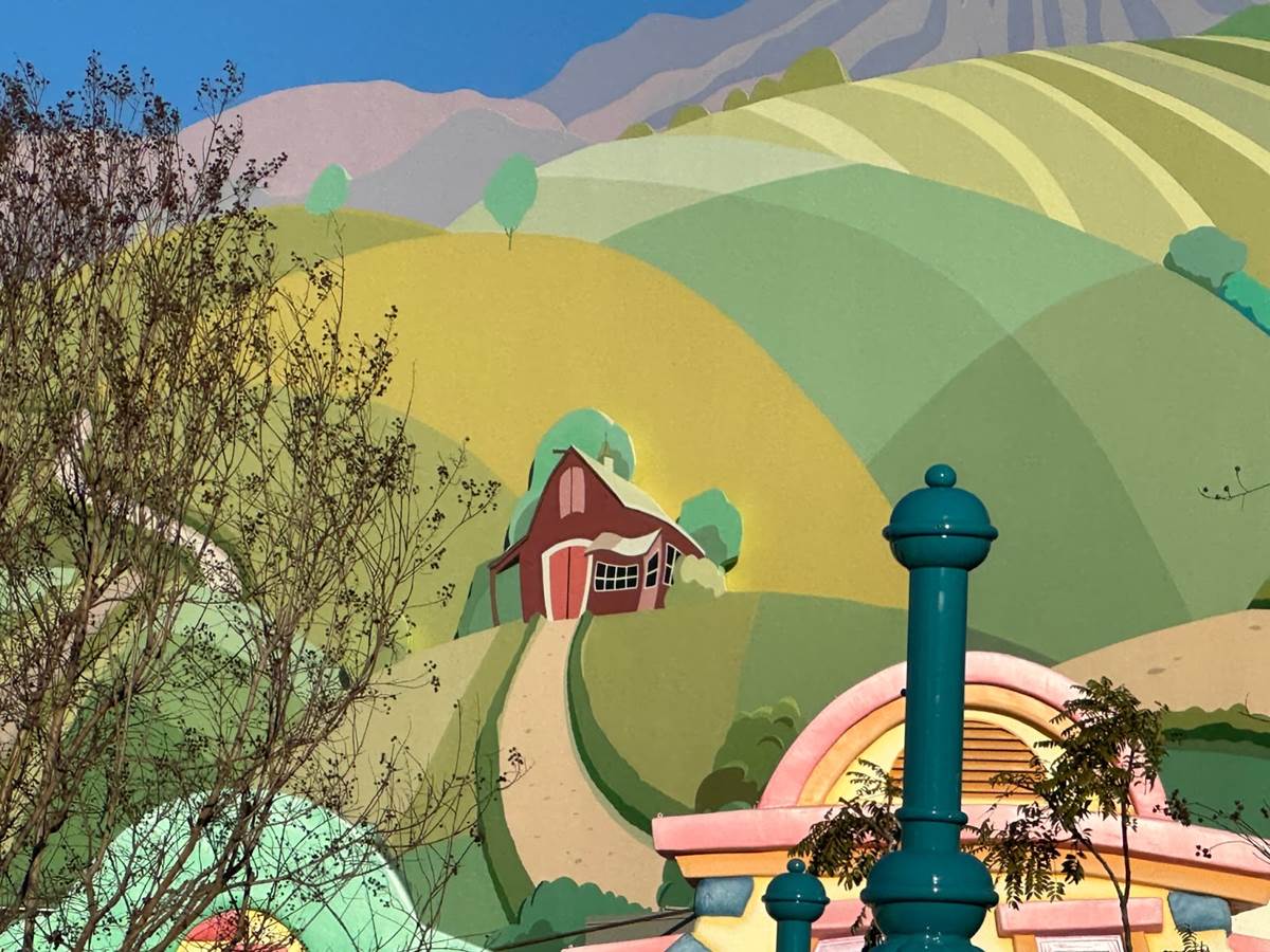 On the hills, you can notice the barn from the end of Runaway Railway off in the distance.