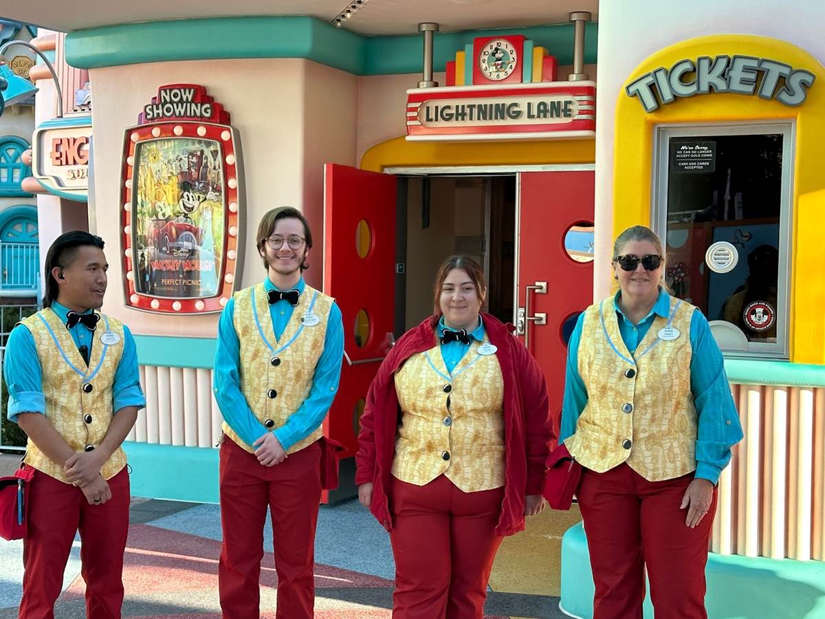 These happy Cast Members pose in their new costumes for the attraction, in front of both the Lightning Lane and Stand By entrances.