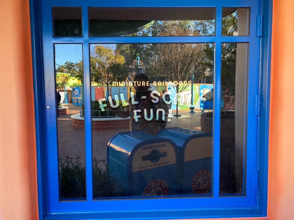 To the Cast Member’s right, you can see a sign referencing the former Gag Factory gift shop.
