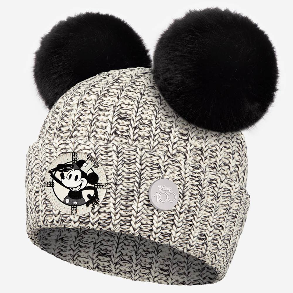 - Each beanie features a circular leather patch with a white foil Mickey or Minnie cartoon and includes a commemorative 100th Anniversary beanie charm.