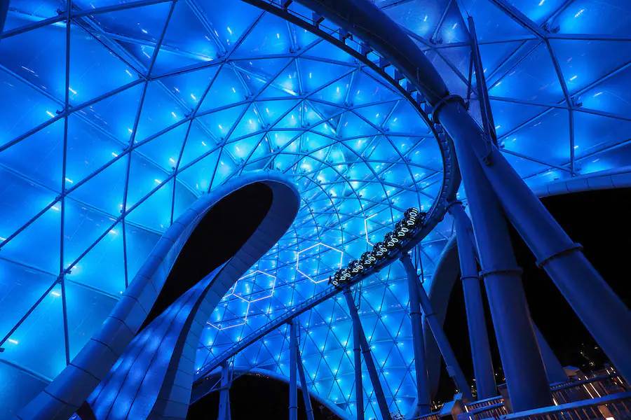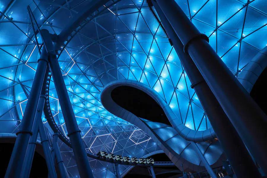 Disney has shared a first look from underneath the impressive canopy of TRON Lightcycle / Run at the Magic Kingdom, as the canopy lights officially power on.