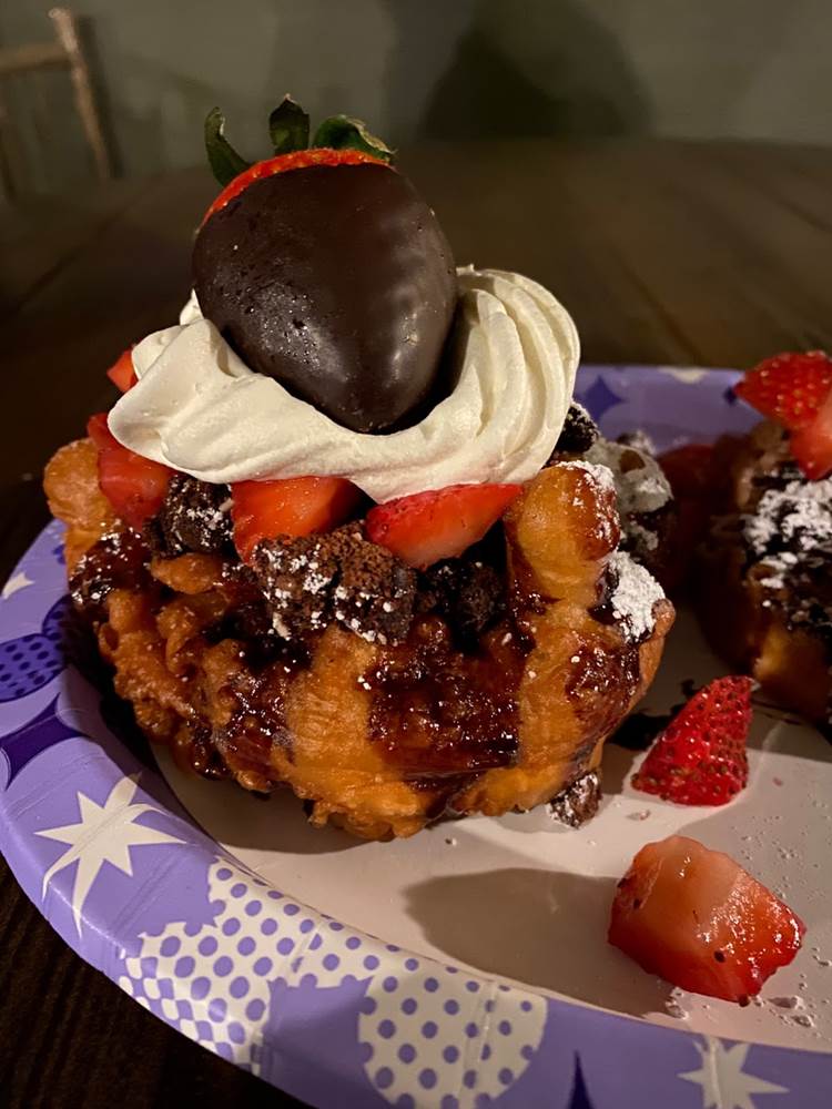 Over at the Stage Door Cafe in Frontierland, they had the Mine & Yours Chocolate Strawberry Funnel Cakes.