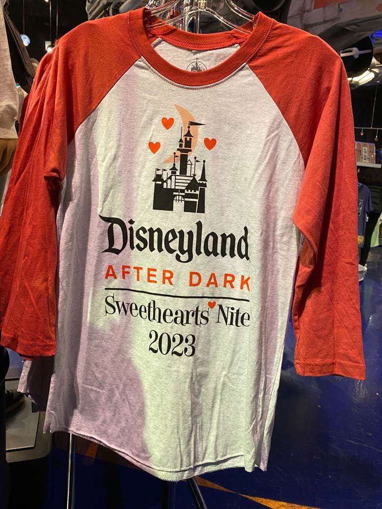Here’s some of the Sweethearts’ Nite exclusive merchandise including a long sleeve shirt, magnet, and ornament, available at the Star Trader in Tomorrowland.