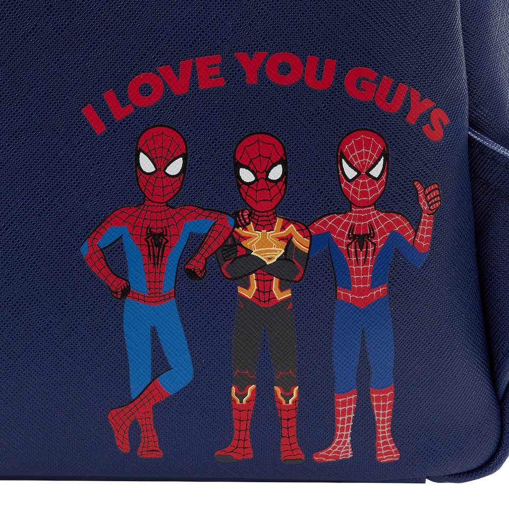 - Share the gift of friendship with your besties through a Loungefly mini backpack that features a triple pocket on the front to showcase the different Spidey suits.