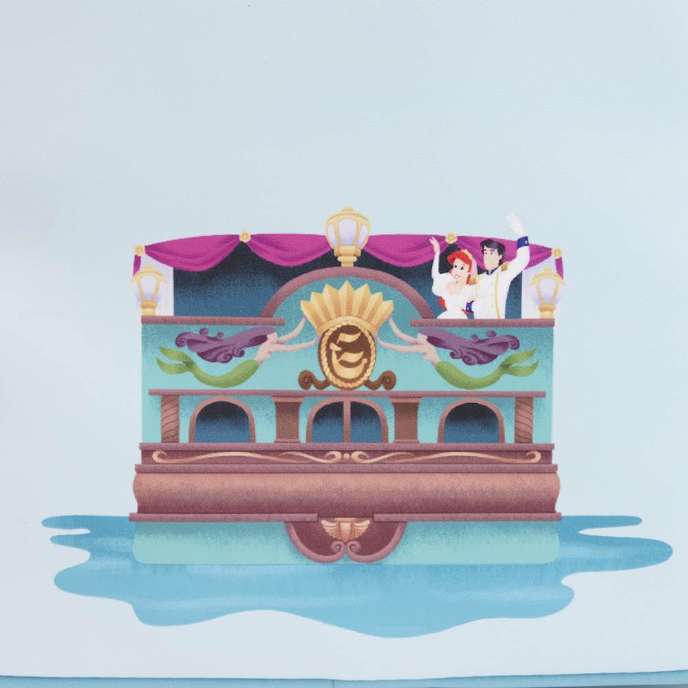 - Turn the bag around to see Ariel’s seafaring friends appear on the side pockets, while the newlyweds make an encore appearance on the back.