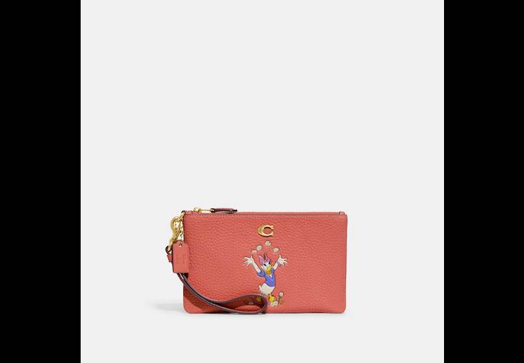 - Disney X Coach Small Wristlet In Regenerative Leather With Daisy Duck