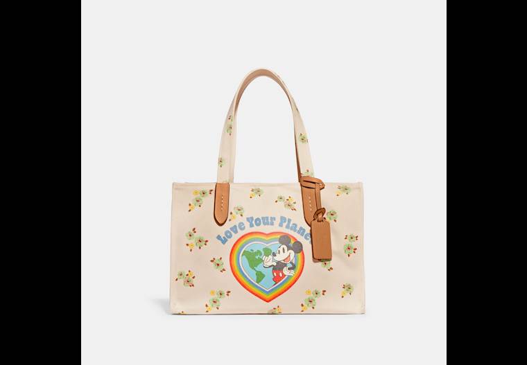 - Disney X Coach Tote 30 In 100 Percent Recycled Canvas With Floral Print And Mickey Mouse