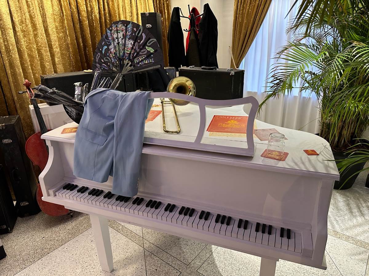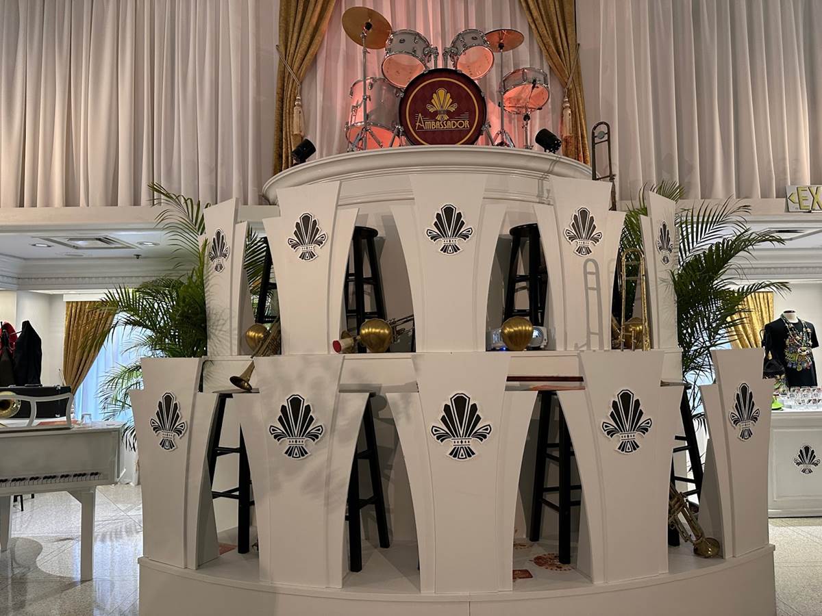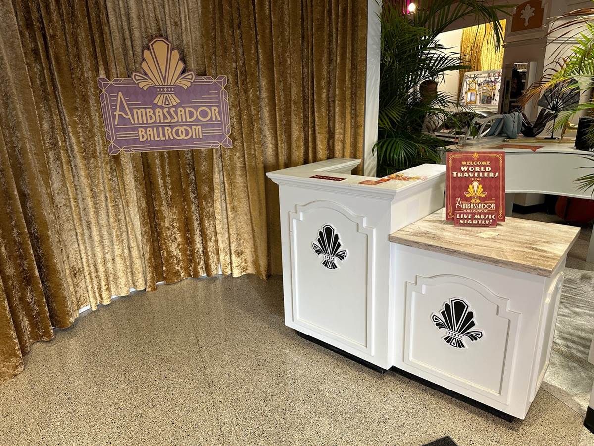 The first room, the former UOAP Lounge, is themed as the Ambassador Ballroom, with a giant bandstand centerpiece.