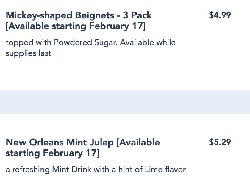 - The menu for Royal Street Veranda on Disneyland.com lists both items available as of tomorrow, February 17th.