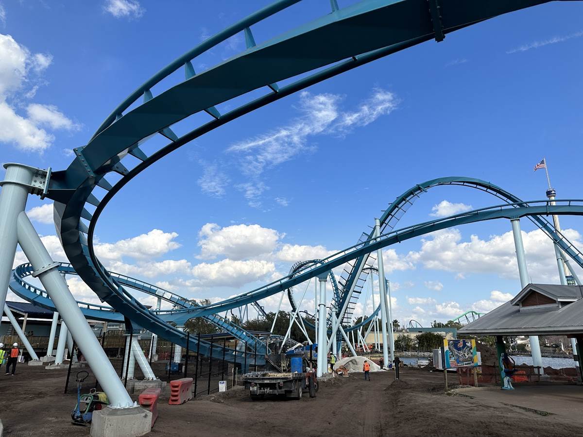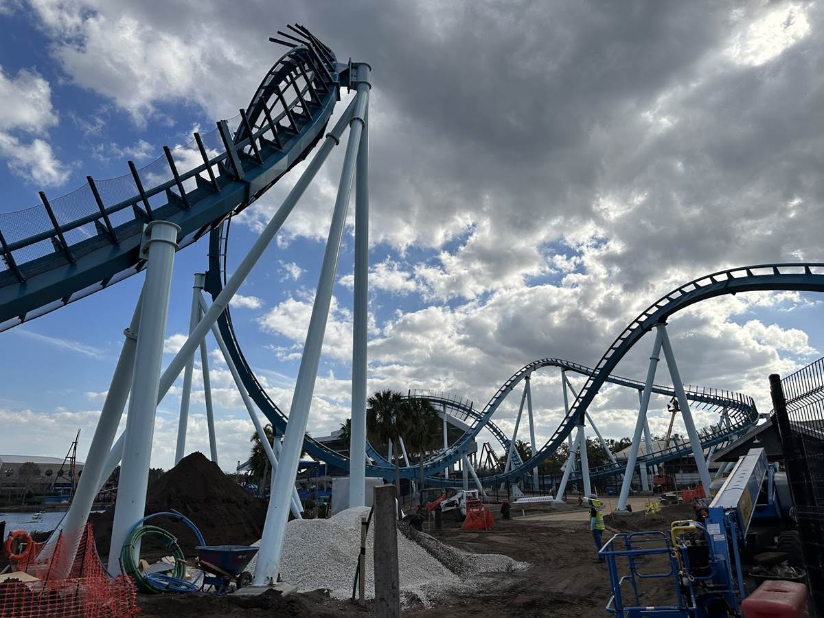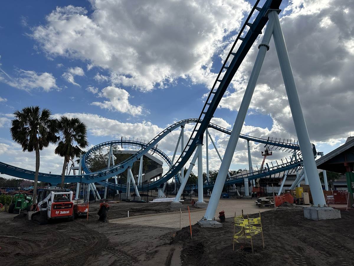 The new coaster occupies the former Bayside pathway, which was known mostly for special event use during SeaWorld’s Christmas Celebration and Halloween Spooktacular. The site now plays home to the new coaster, which was also showcased at last year’s IAAPA convention at the Orlando Convention Center.