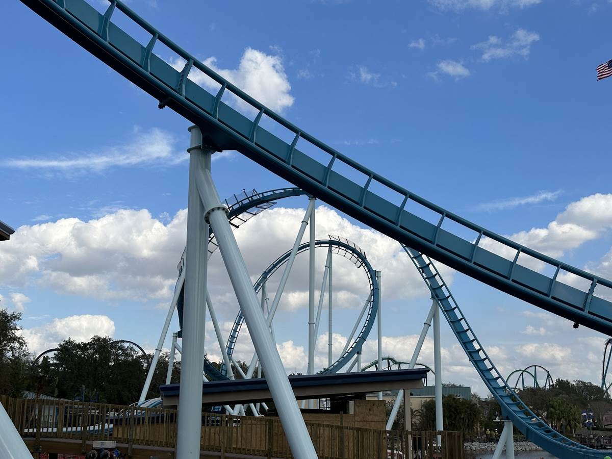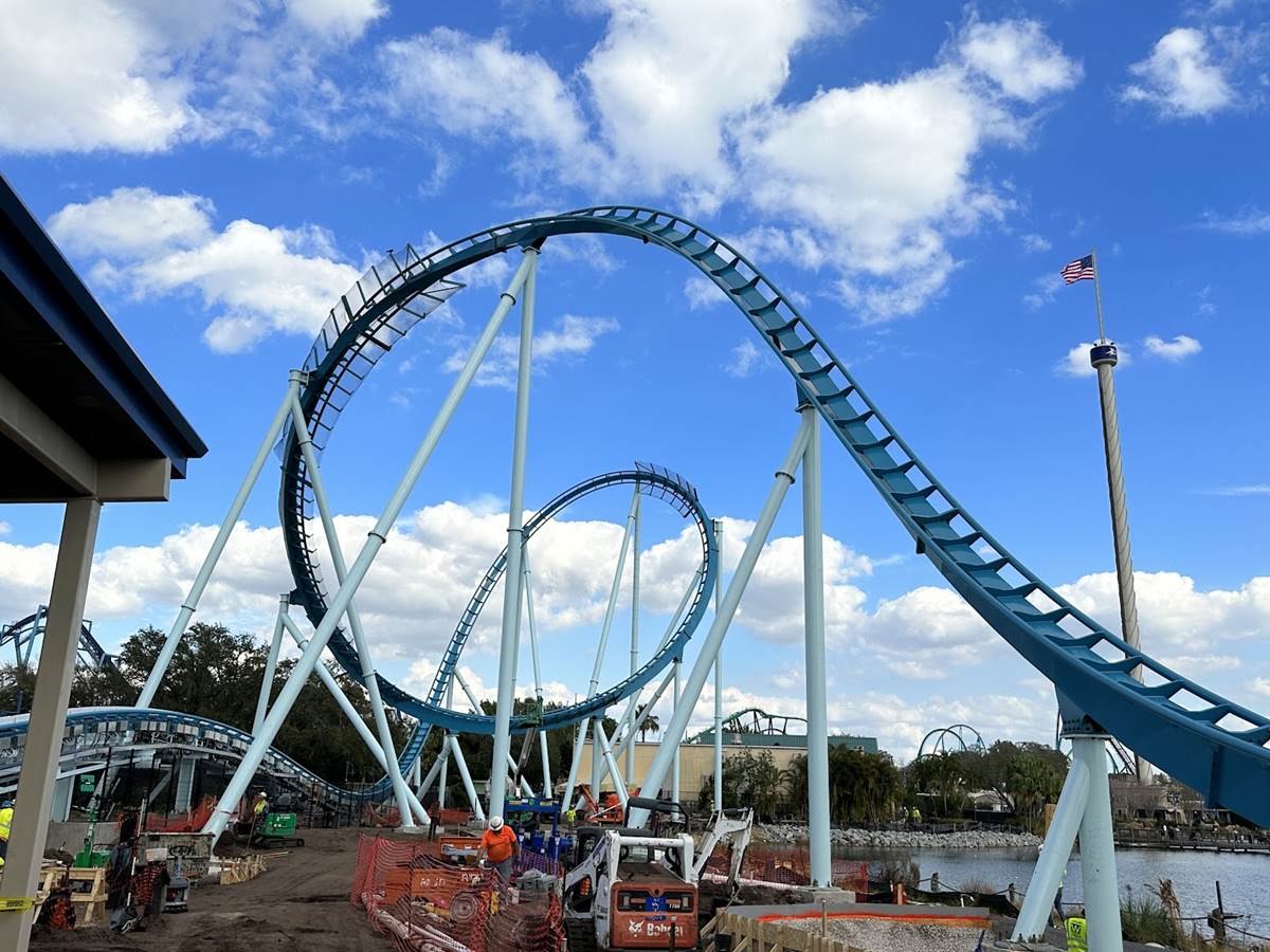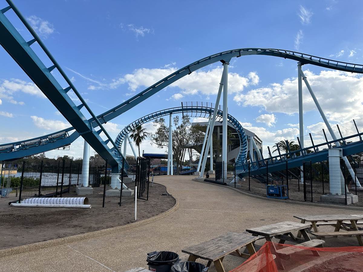 The new coaster occupies the former Bayside pathway, which was known mostly for special event use during SeaWorld’s Christmas Celebration and Halloween Spooktacular. The site now plays home to the new coaster, which was also showcased at last year’s IAAPA convention at the Orlando Convention Center.