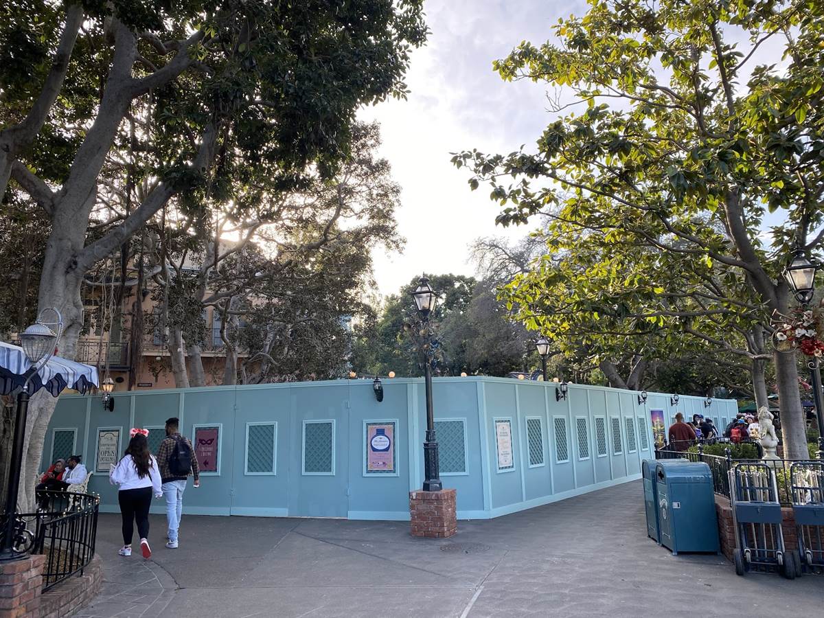 Guests visiting Disneyland Park will notice a good portion of New Orleans Square now behind construction walls as the popular dining location, French Market, has closed permanently to make way for Tiana’s Palace, which is taking over the location.