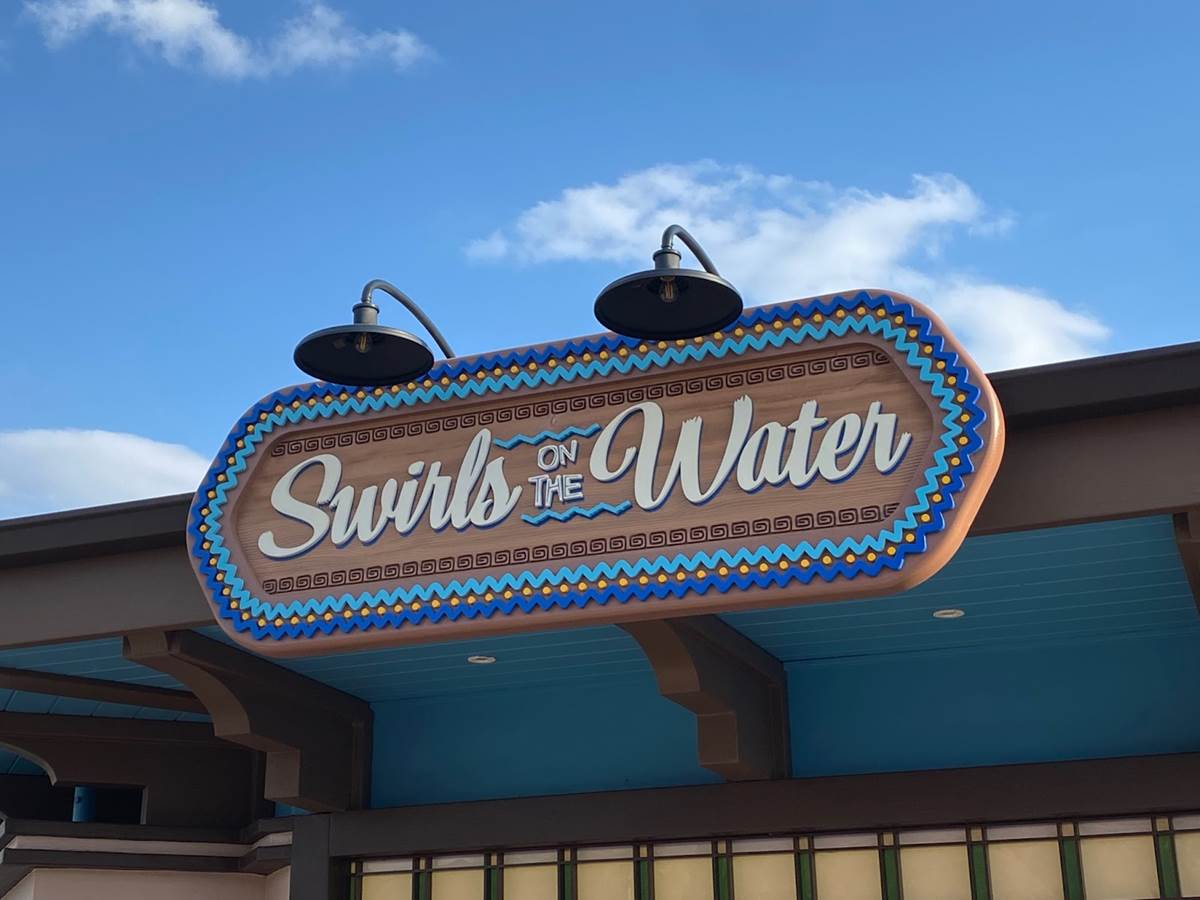 Swirls on the Water, which replaced AristoCrepes in Disney Springs last year, recently debuted a fresh, more permanent new sign.