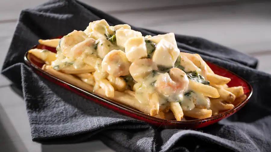 - Shrimp Scampi Poutine with cheese curds, lemon-garlic cheese fondue, spinach, and artichokes (New)