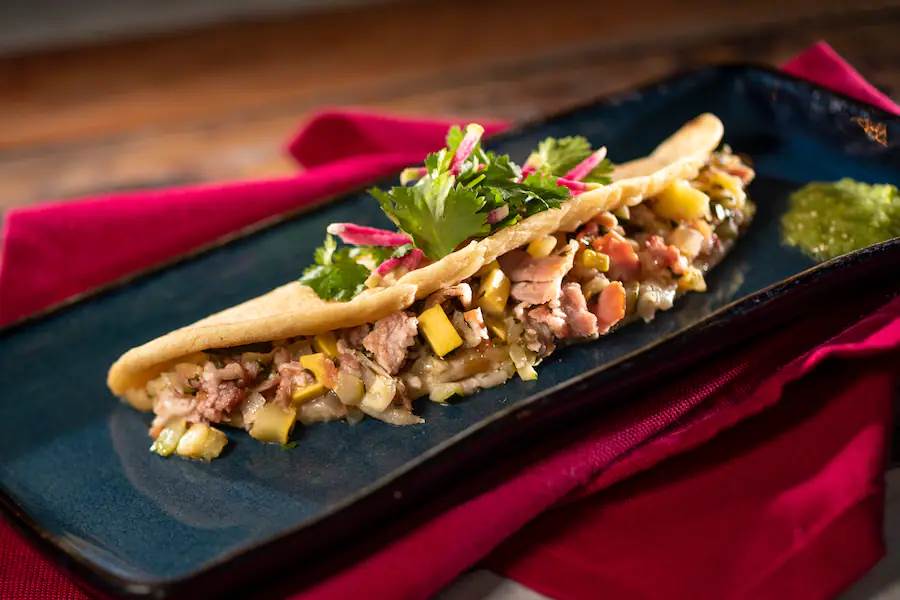 - Taco Vampiro: Barbacoa Beef in a Corn Tortilla with crispy grilled monterey jack cheese, salsa ranchera, and esquites (Gluten/Wheat Friendly)