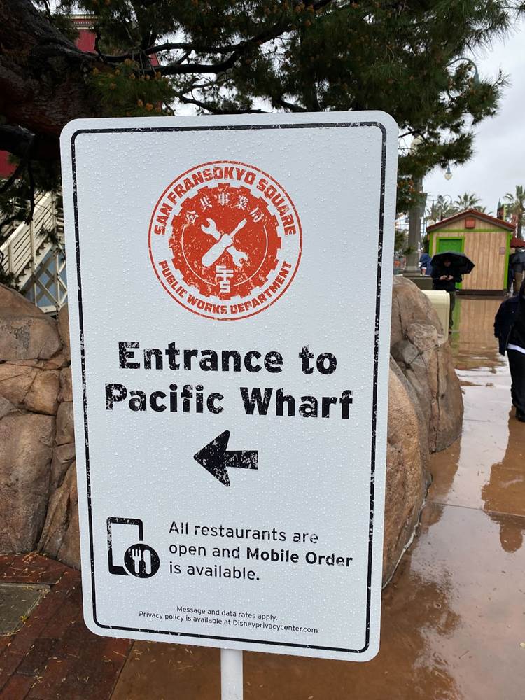 - Pacific Wharf has been standing since Disney’s California Adventure opened in 2001, and is home to eateries featuring sourdough bread, ice cream sundaes, delicious Mexican fare, Asian dishes and more. Good news for longtime park fans, you’ll still be able to enjoy all your favorite Pacific Wharf dining locations during this transformation and when San Fransokyo Square is completed this summer, you’ll find familiar favorites like soups in freshly baked bread bowls, as well as many new Asian-inspired selections. The new Port of San Fransokyo Cervecería draws inspiration from its tri-cultural influences with signage in English, Japanese and Spanish. Outside will be a fun and inviting beer garden decorated with festoon lights and papel picado.