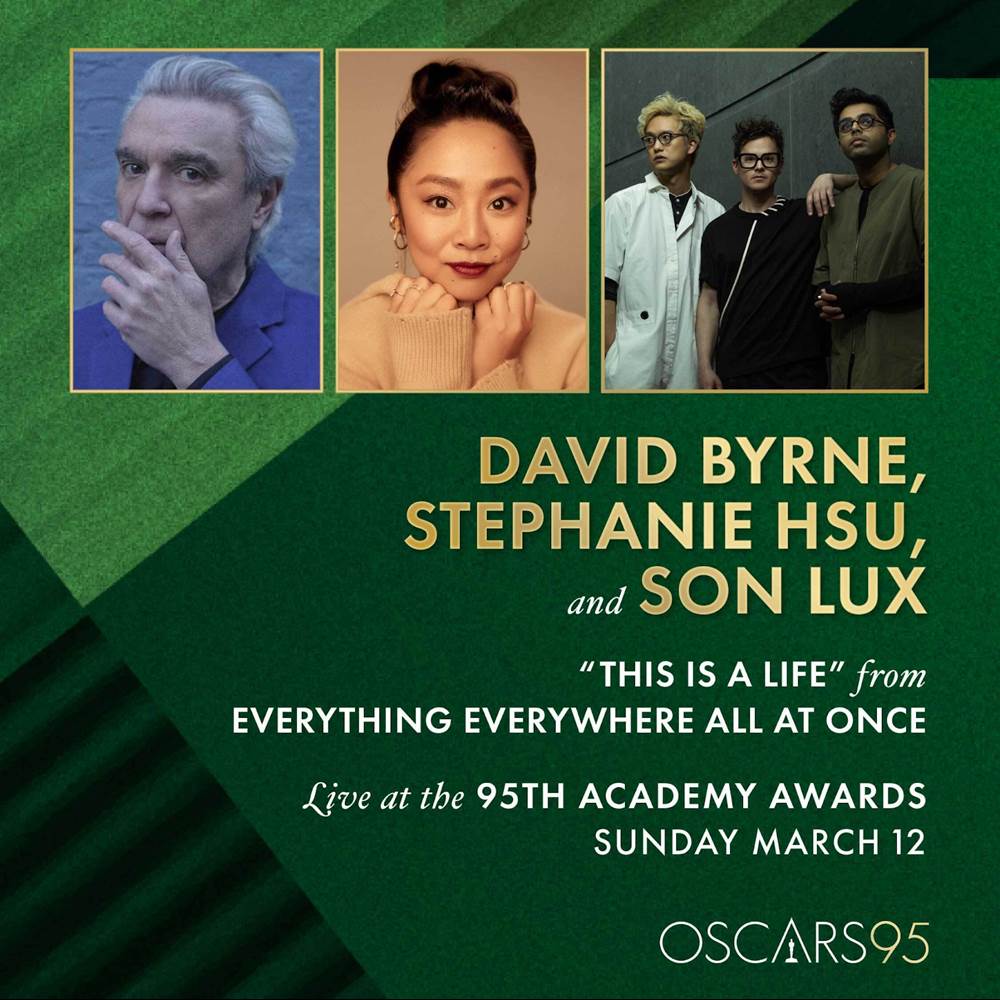 Oscar-winning multihyphenate David Byrne, Oscar-nominated actor Stephanie Hsu and music trio Son Lux will perform the Oscar-nominated song “This Is A Life" from Everything Everywhere All at Once during the 95th Academy Awards on ABC.